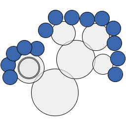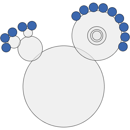 Generally, the cactus group layout algorithm places all child nodes in the hierarchy such that they are touching their respective parent node. However, an overlap can be specified as a fraction of the child's radius, by which the node will be moved towards the parent node's center.