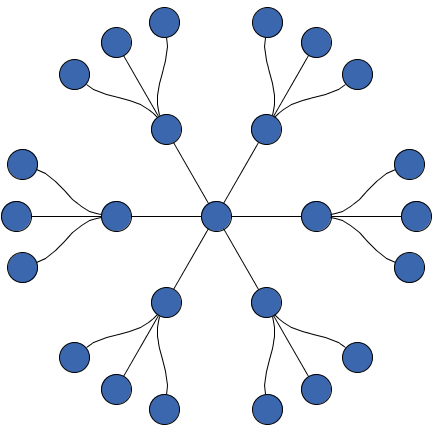 The layout algorithm creates a virtual tree structure for the input graph whose root node is placed in the center of the circles. All children of a tree node are placed on a higher layer (i.e. on a circle of larger radius) than their parent. A sector is calculated for each node such that the sector of each child node in the virtual tree is a sub-sector of its parent's sector. The radii of the circles are calculated based on the sizes of the sectors required to accommodate each whole subtree.